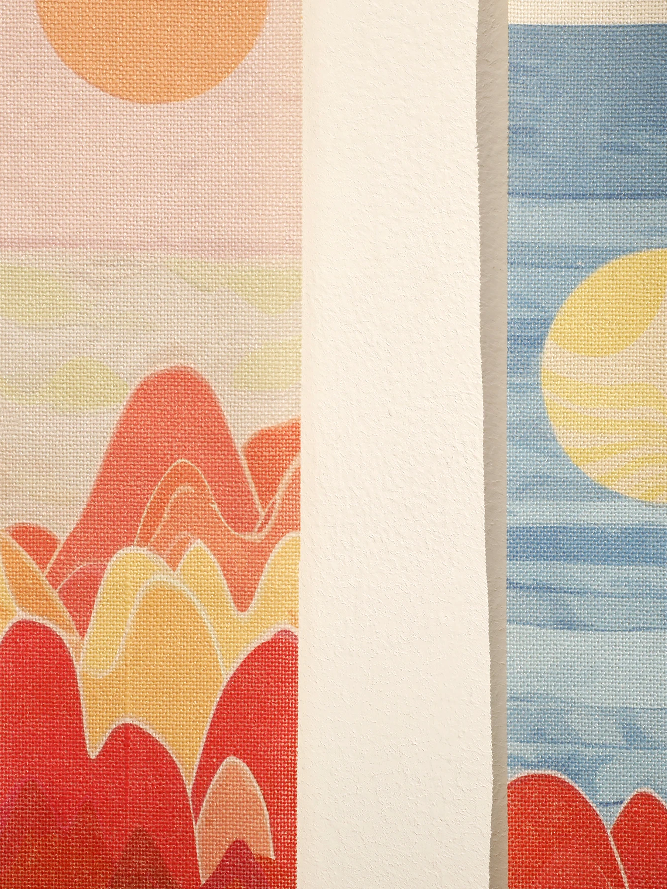 Esta tapeçaria serve como uma decoração estética de parede, acrescentando um toque de elegância e tranquilidade ao ambiente de qualquer divisão.